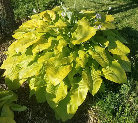 A lovely seedling of ‘Sagae’ that Dick Barbee named for his wife, Jeanne. ‘I Dream of Jeanne’ has deeply veined, chartreuse leaves that gradually brighten to a rich golden-yellow color by mid-summer. The heavy foliage has a bit of a sheen and develops some light puckering at maturity. Hosta ‘I Dream of Jeanne’ forms a large mound about 24″ tall and 47″ across that blooms with fertile, white flowers in early-mid summer.